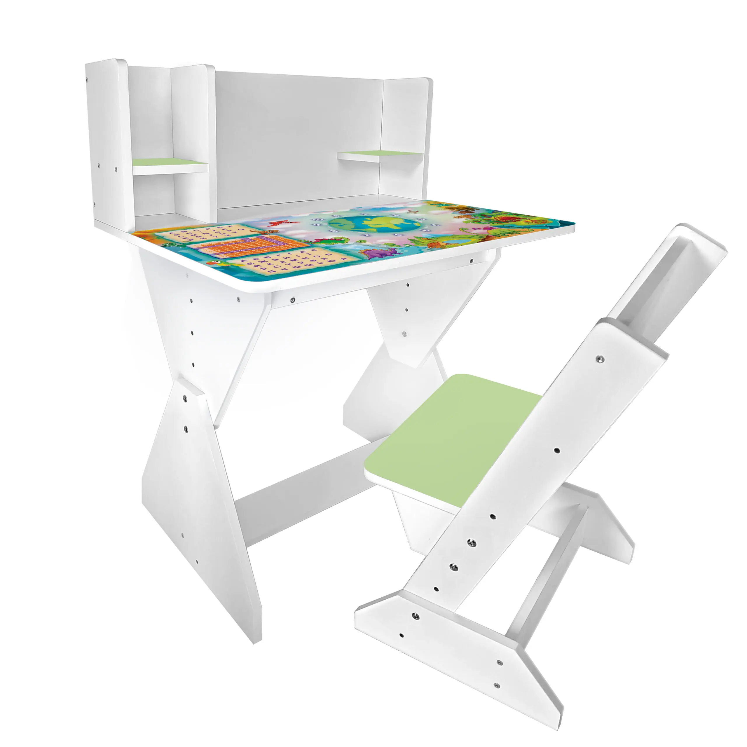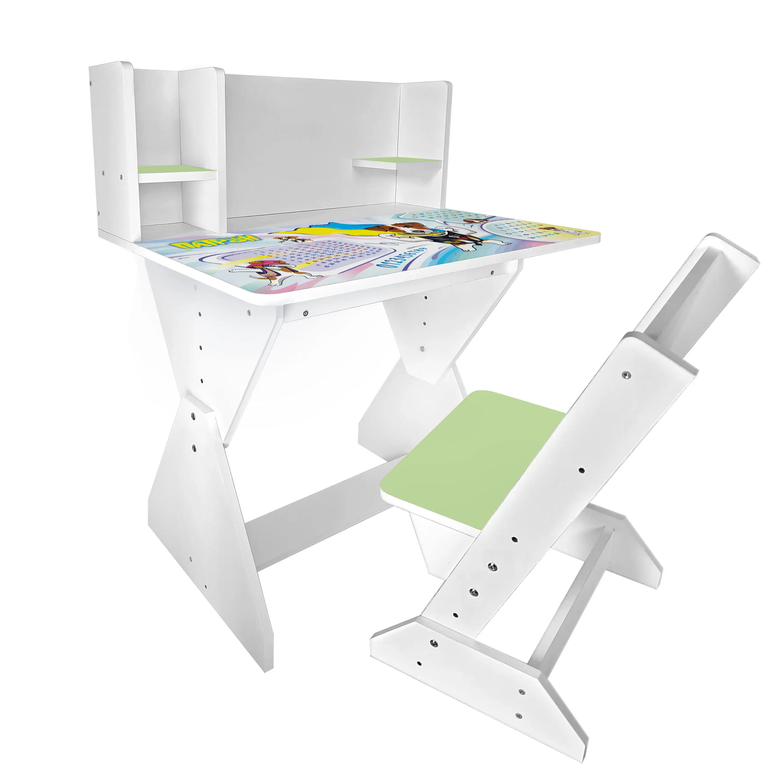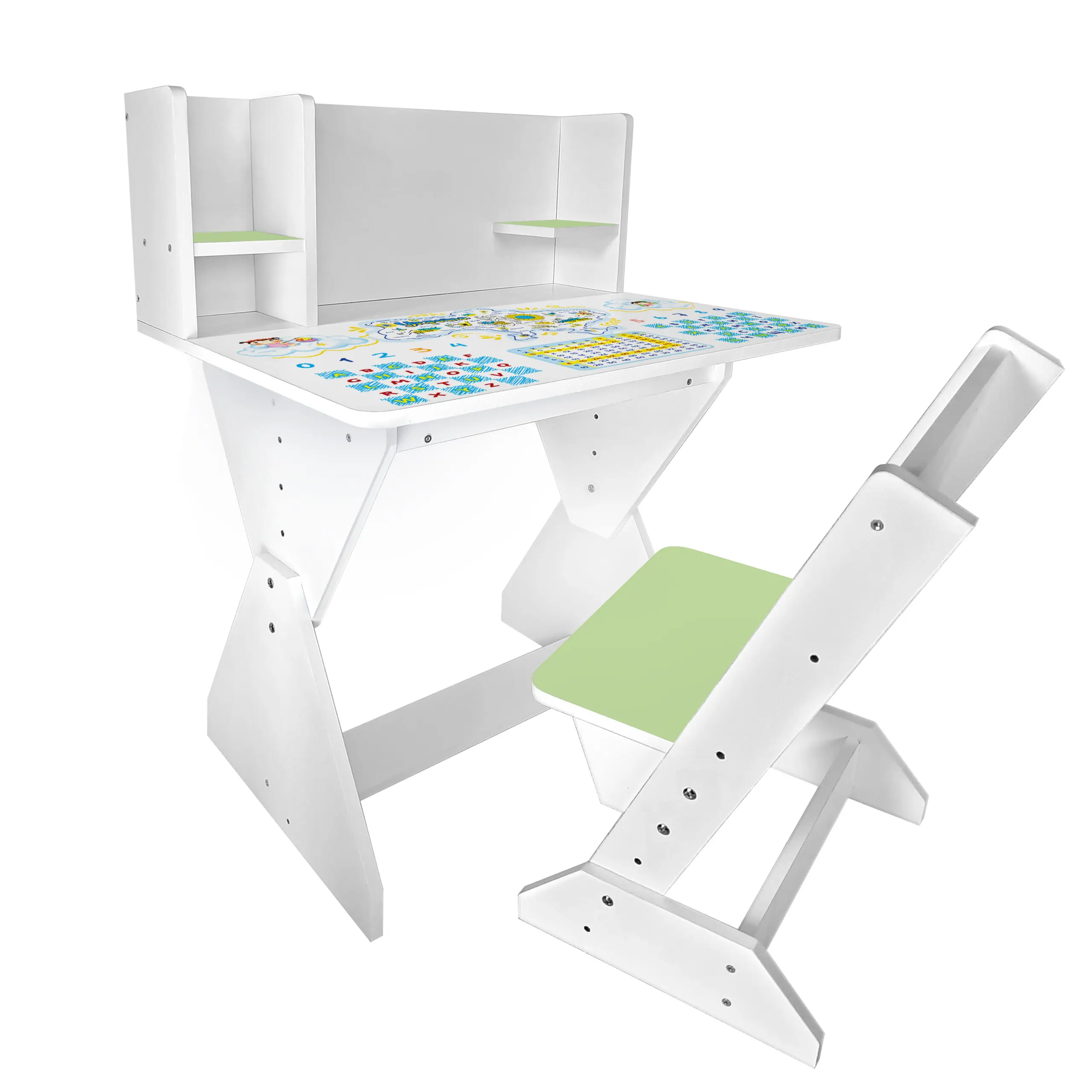 Колір: біло-салатовий (стільчик має салатову спинку і сідушку, та перегородки на парті).