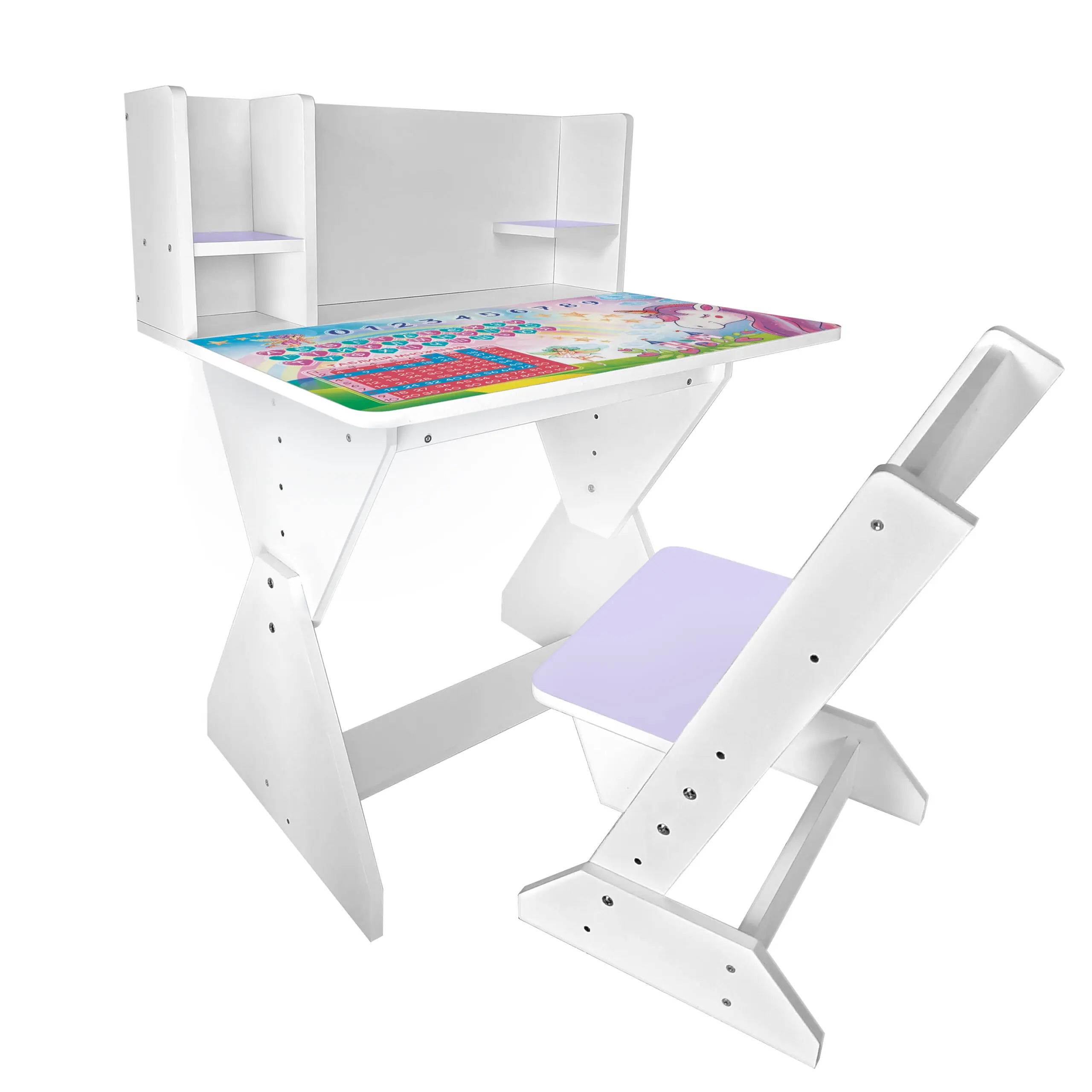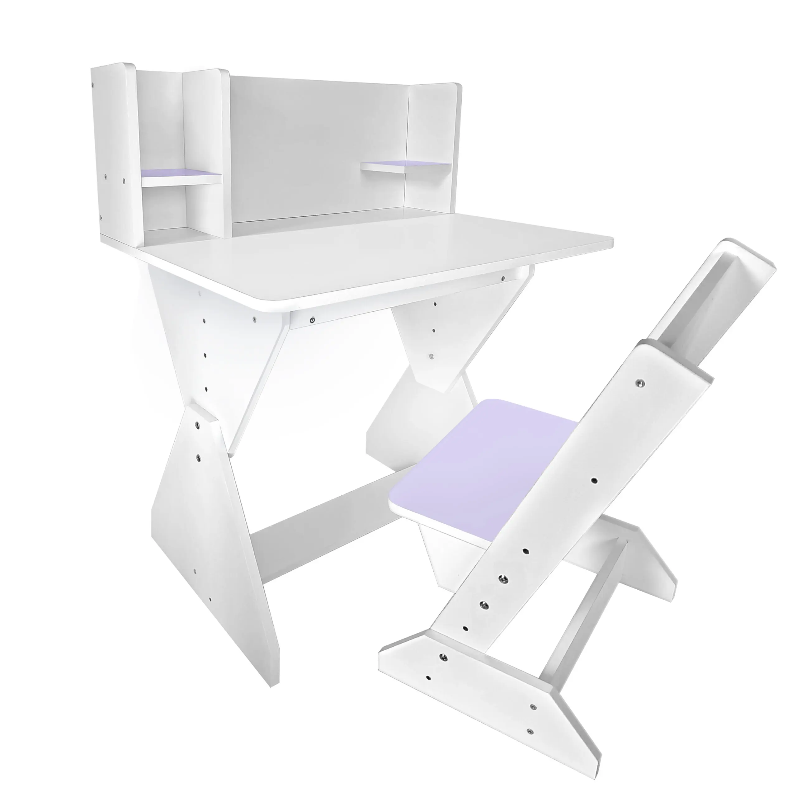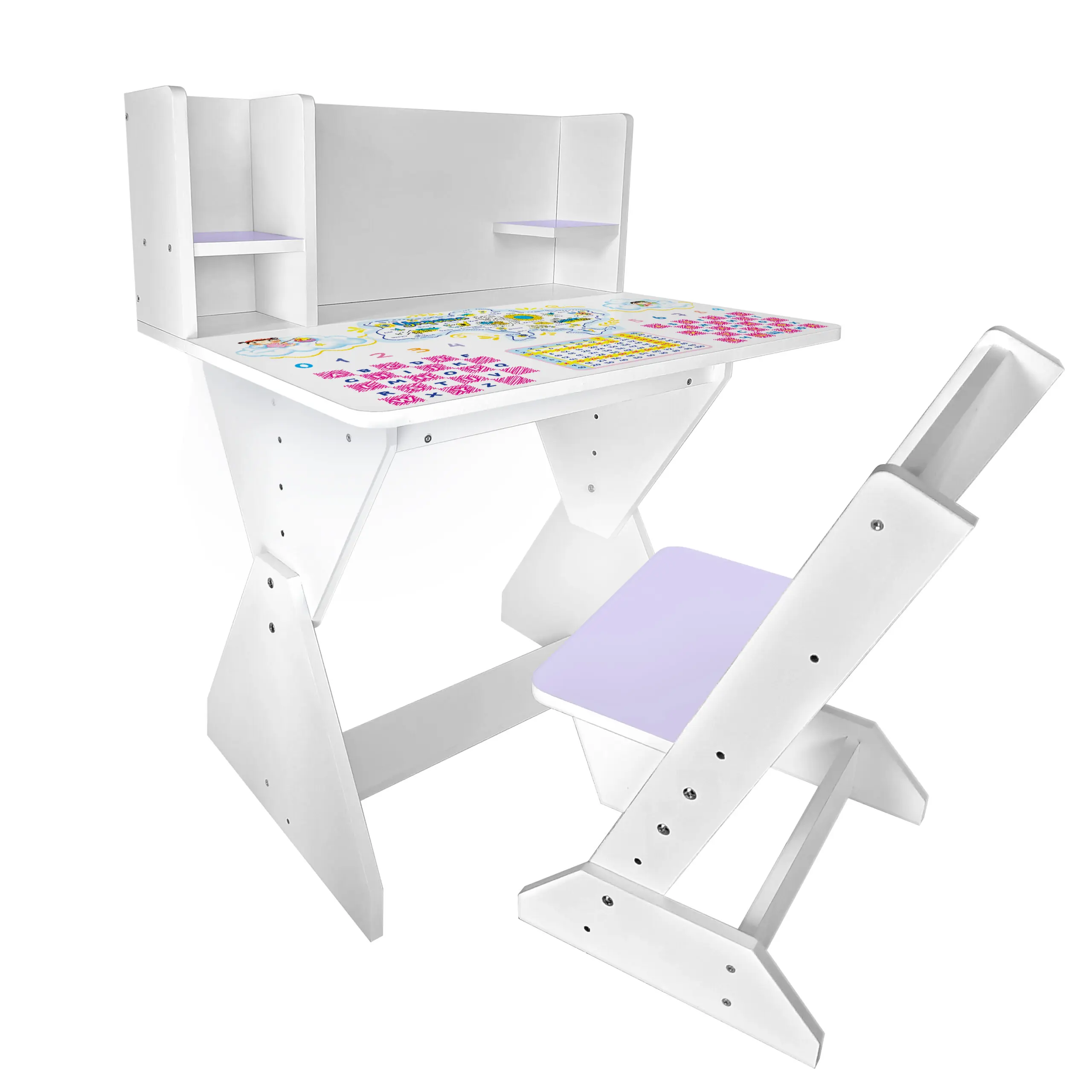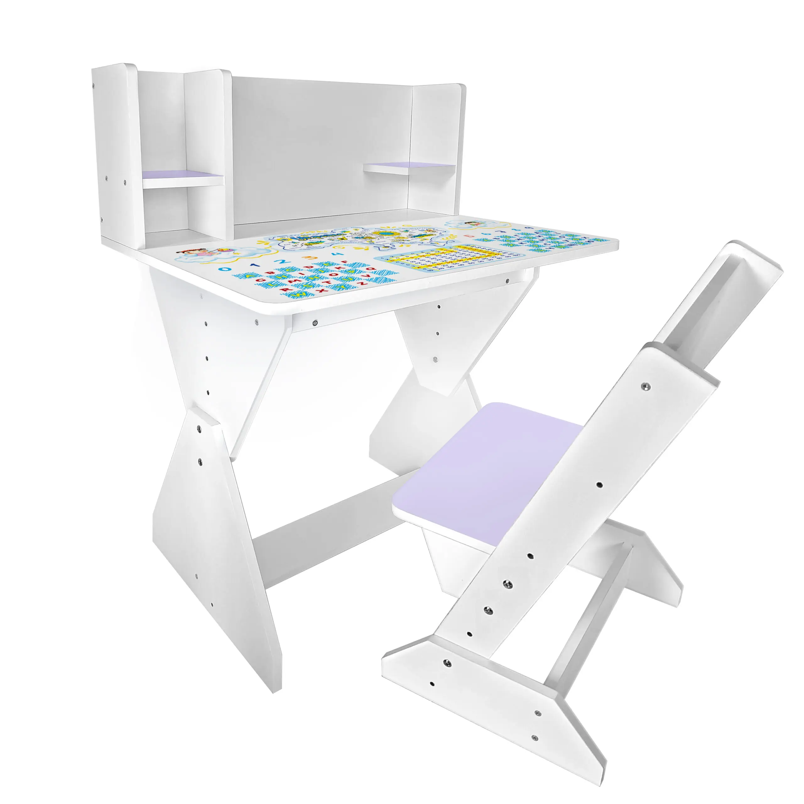 Колір: біло-лавандовий (стільчик має лавандову спинку і сідушку, та перегородки на парті).