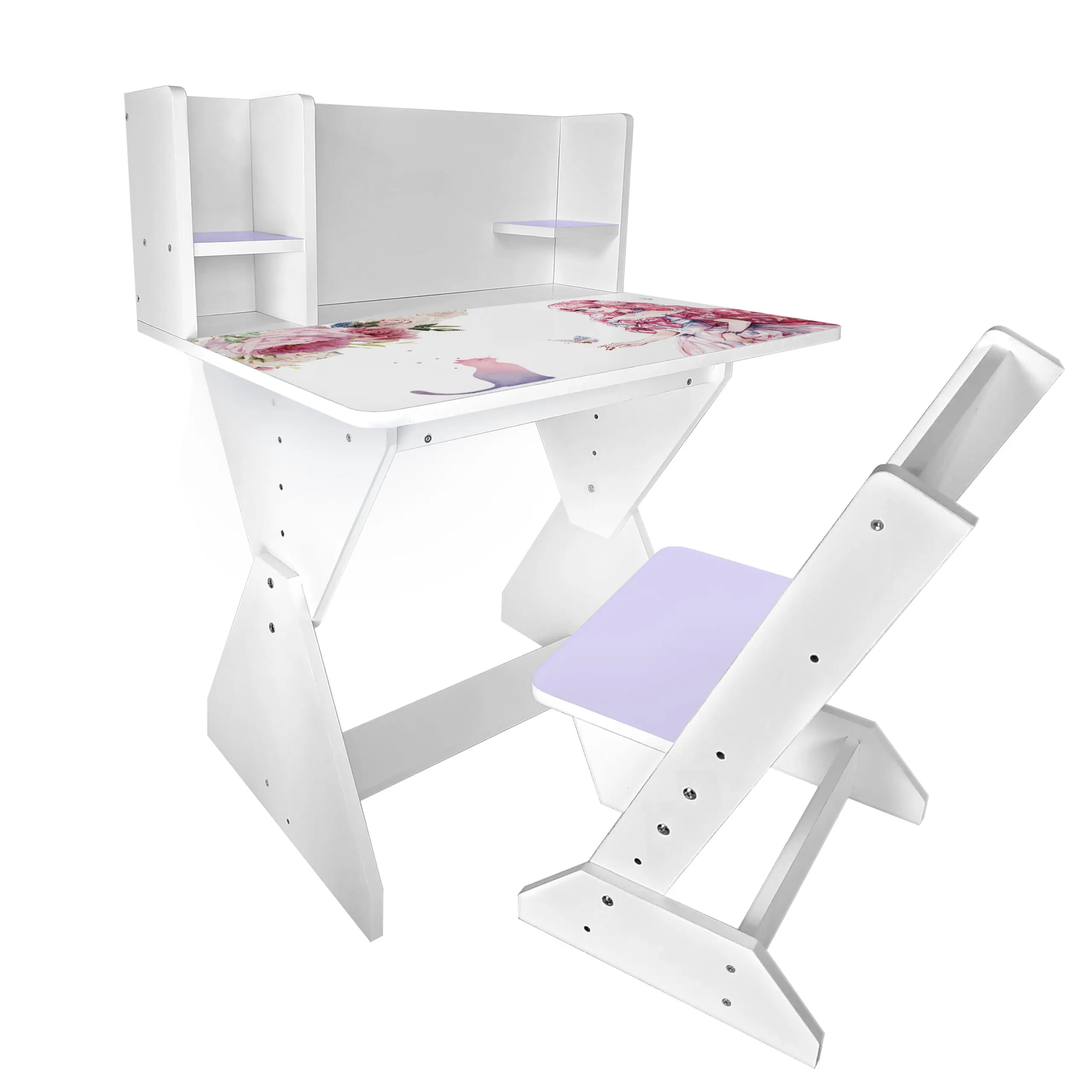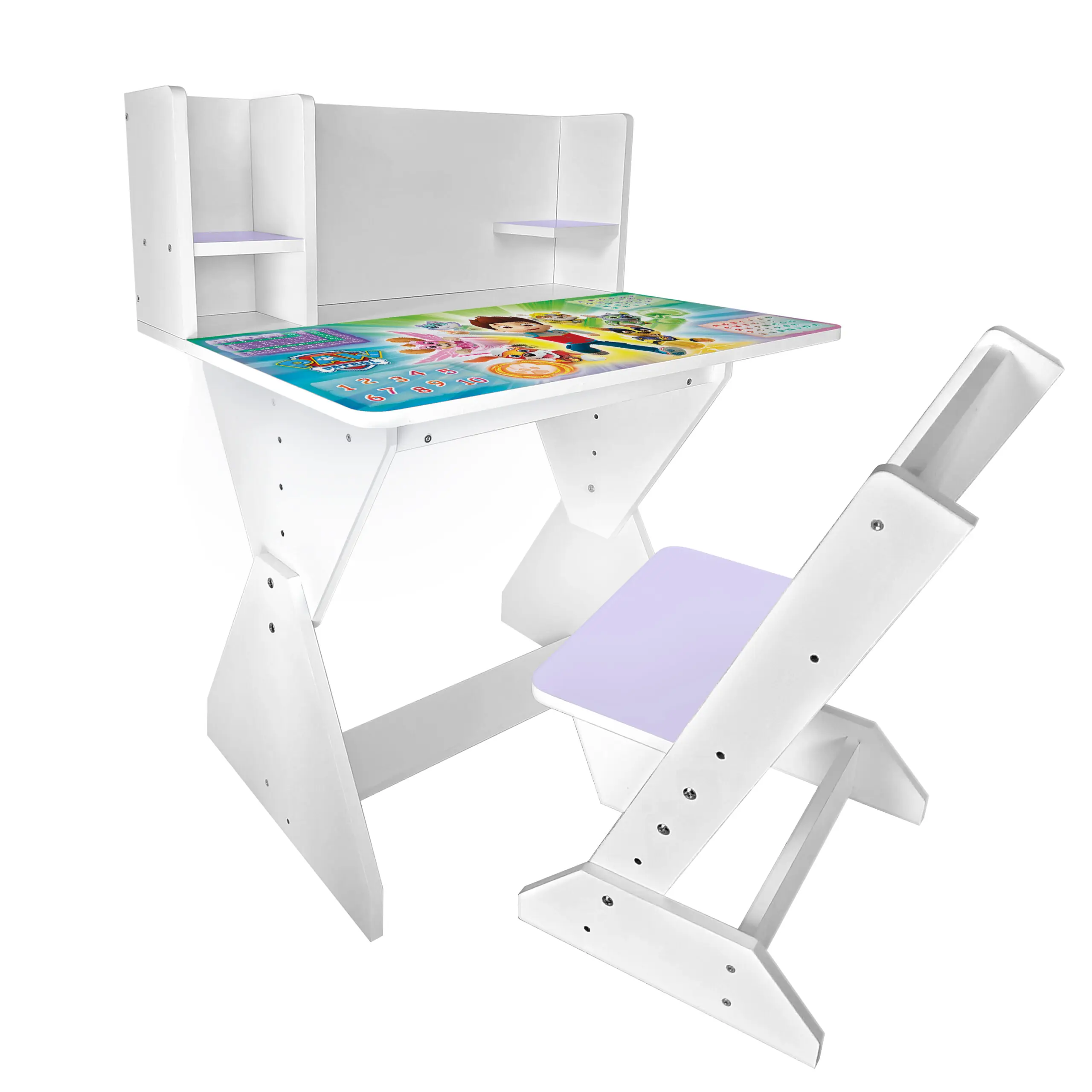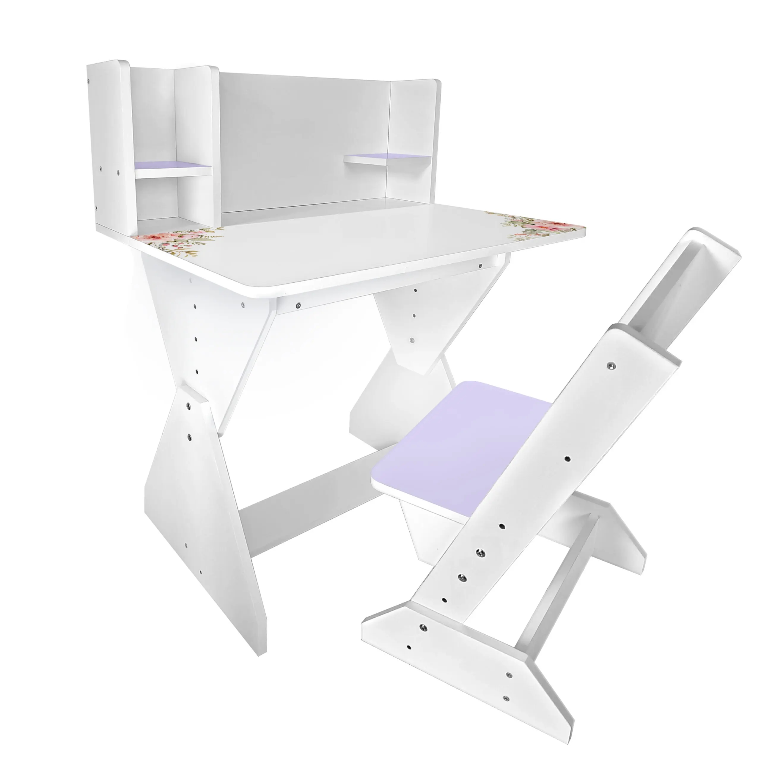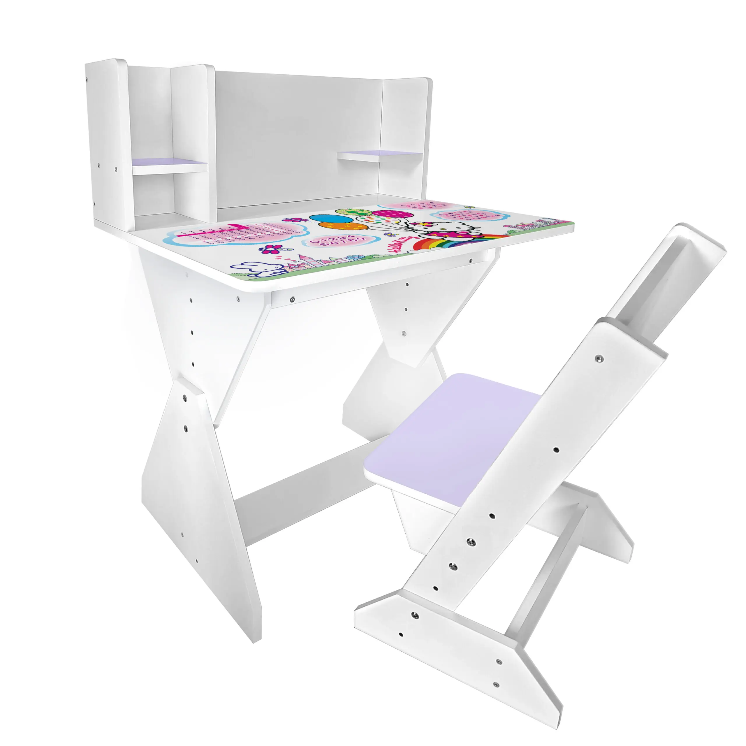 Колір: біло-лавандовий (стільчик має лавандову спинку і сідушку, та перегородки на парті).
