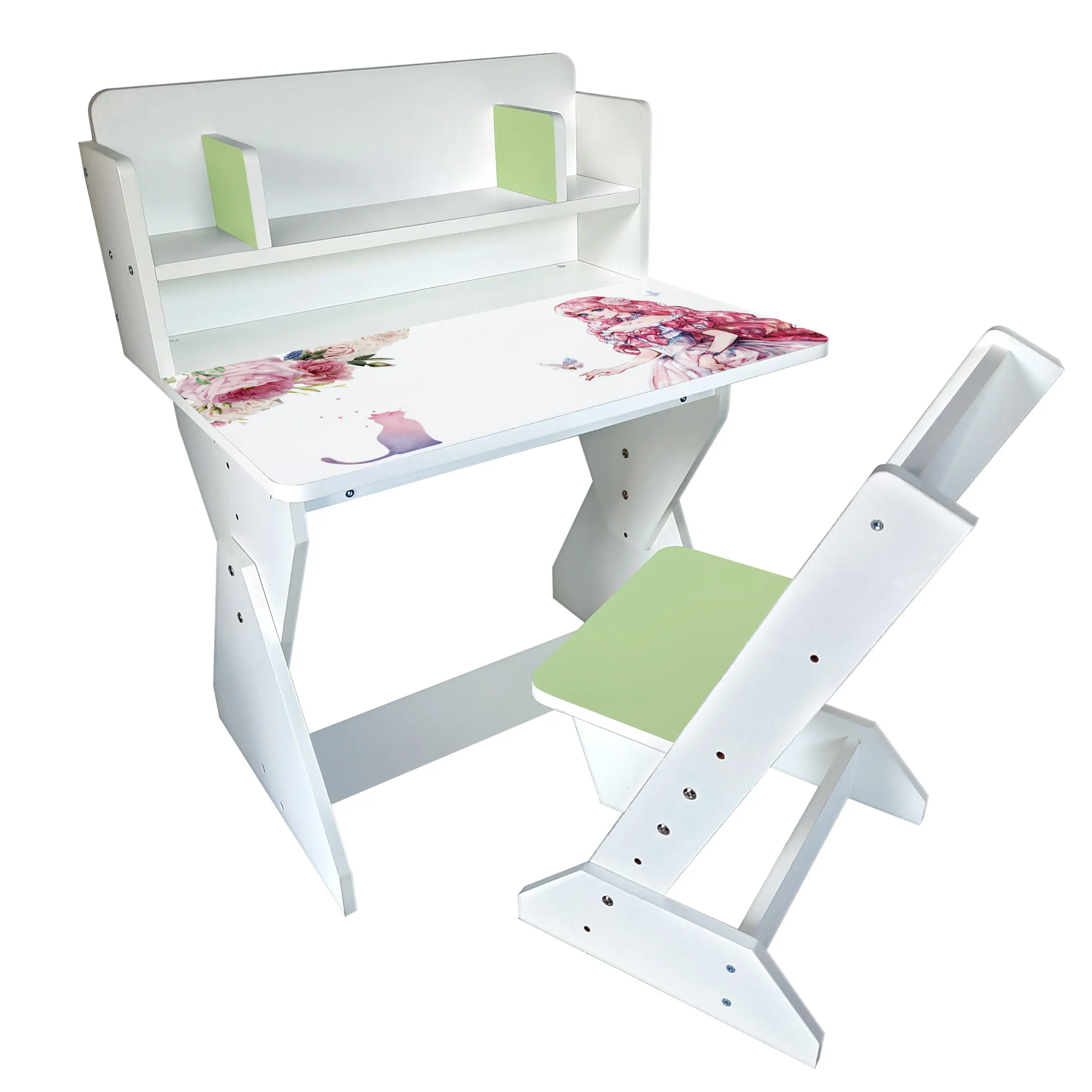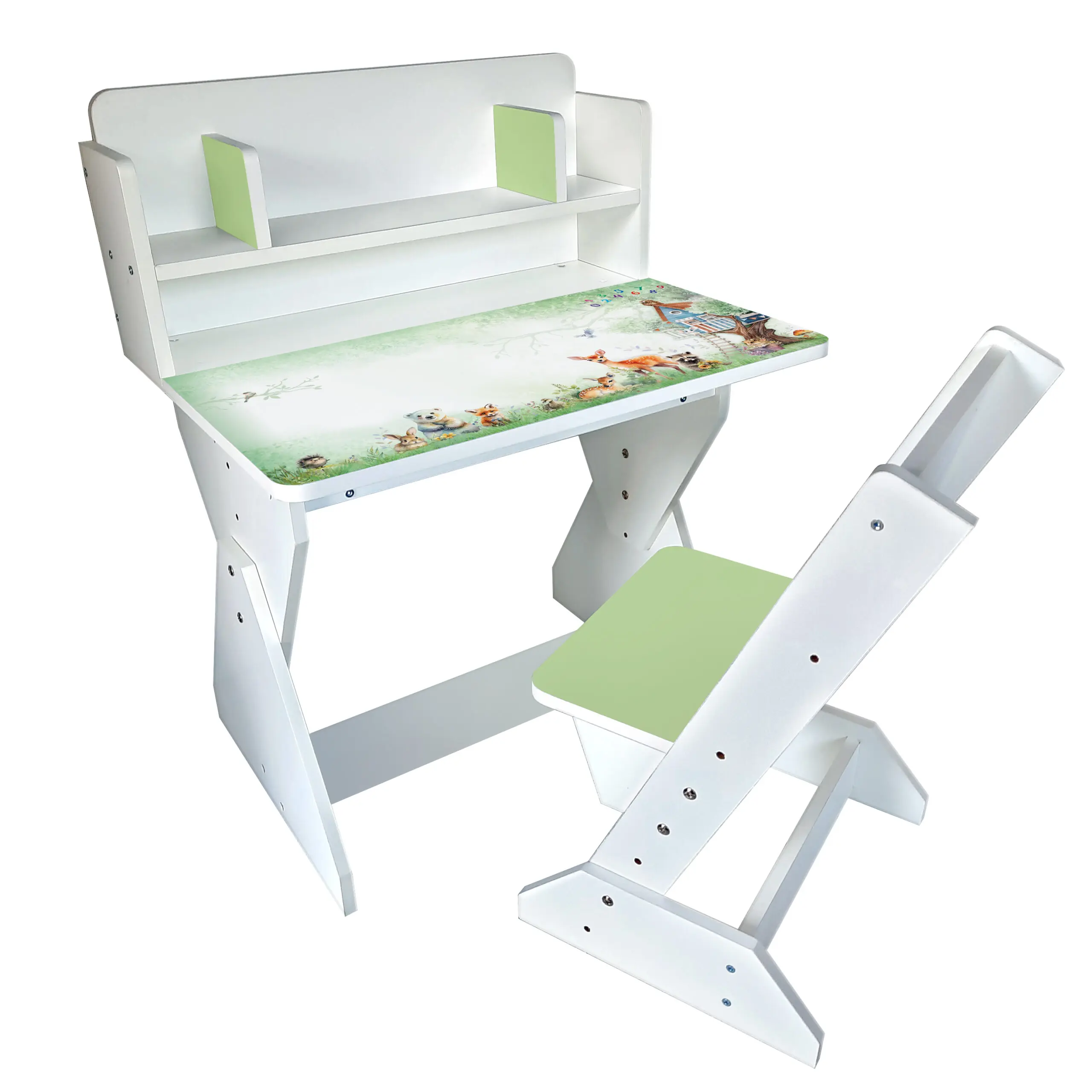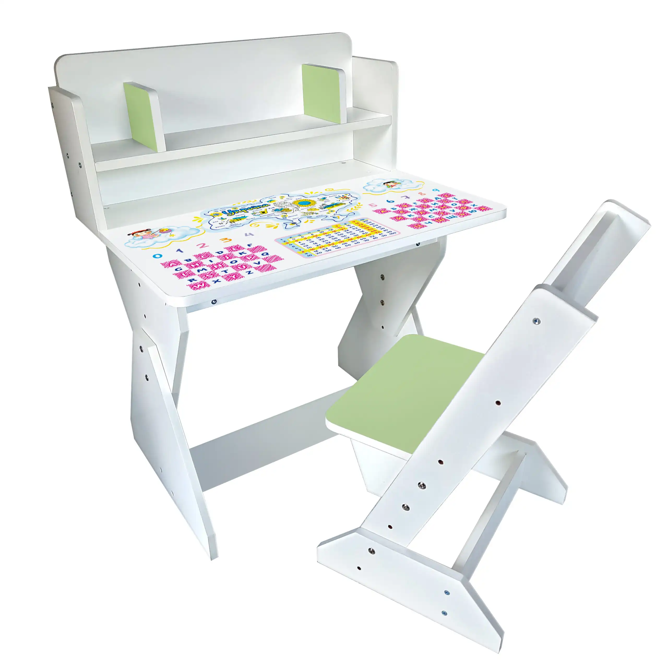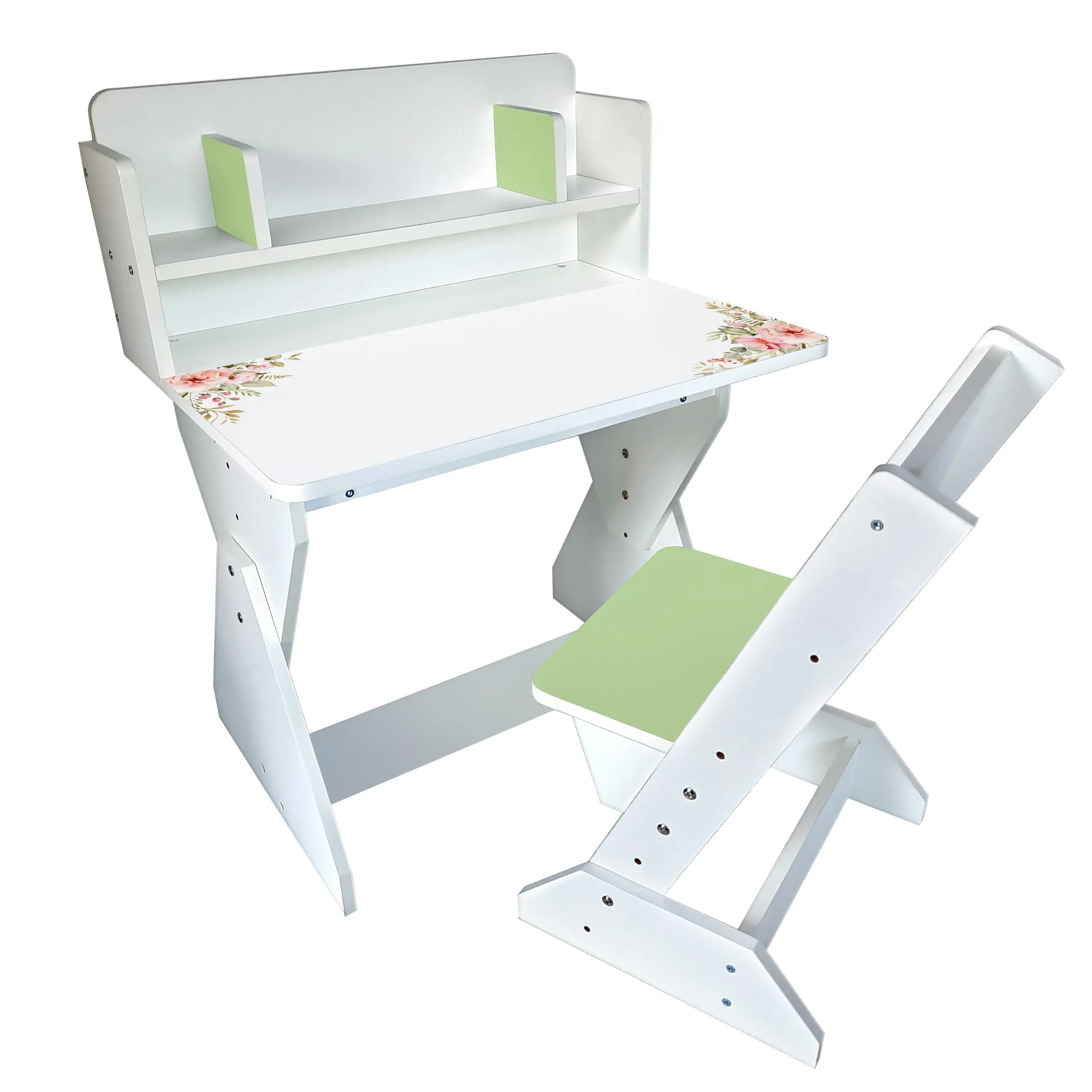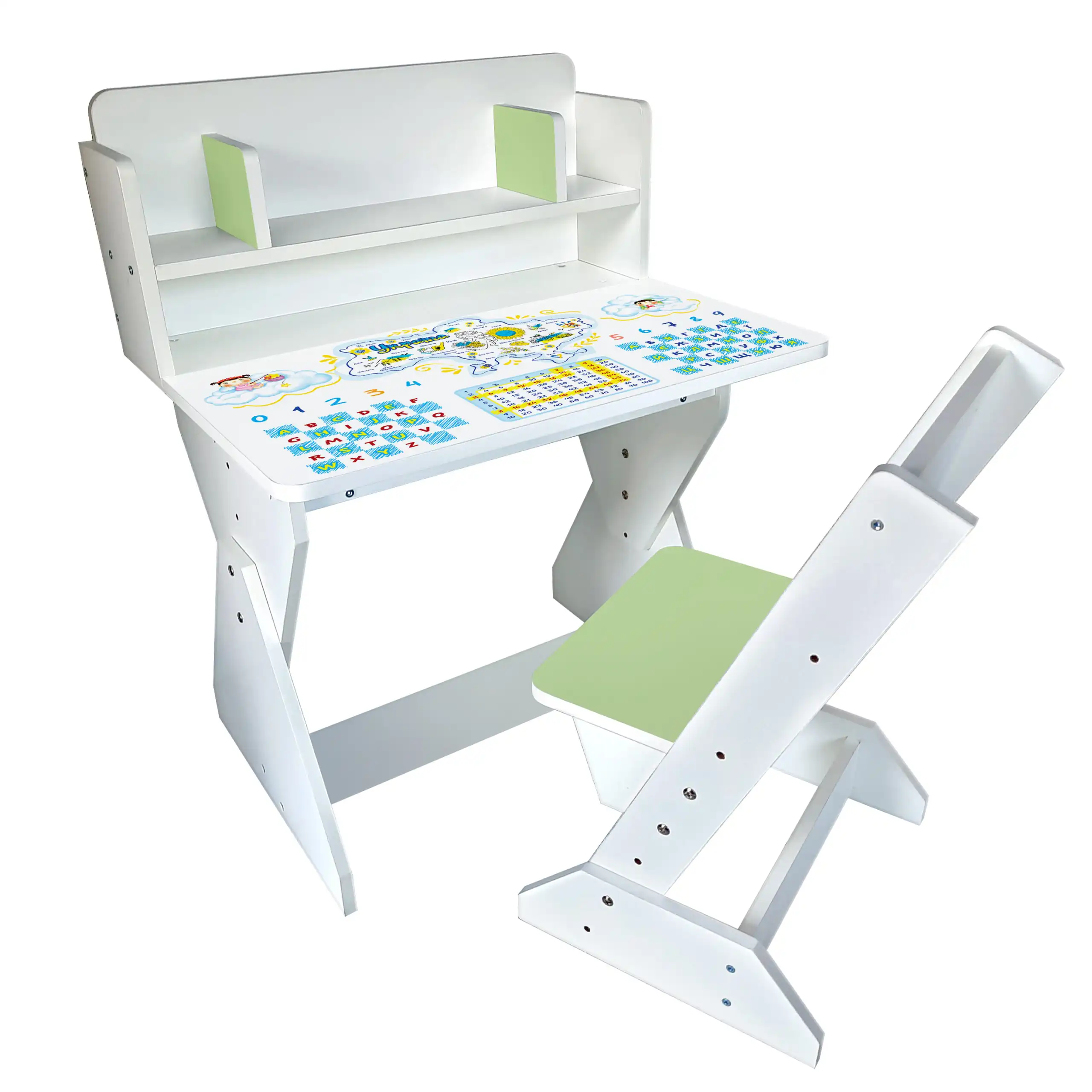 Парта зі стільчиком, з регулюванням висоти (біло-салатовий колір)