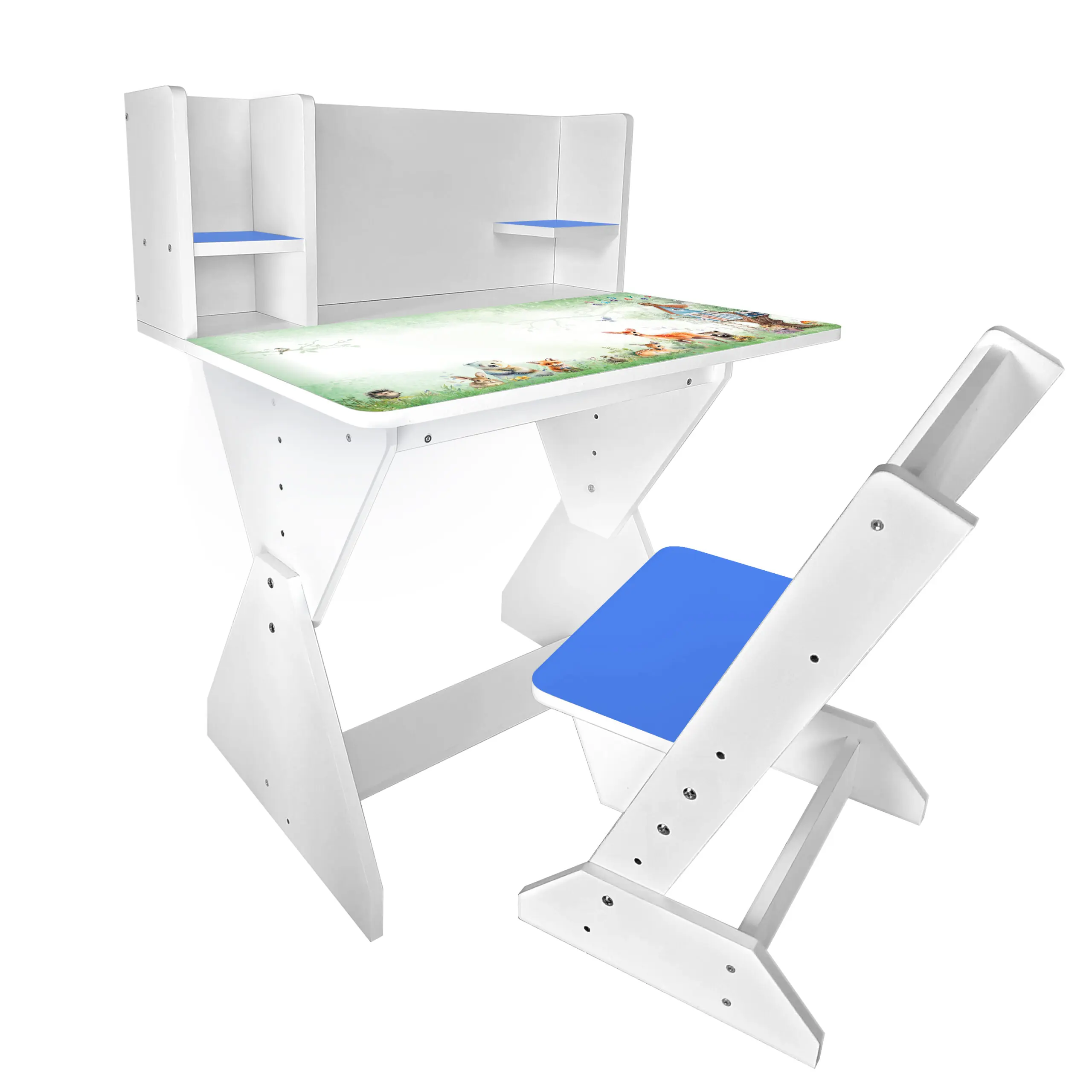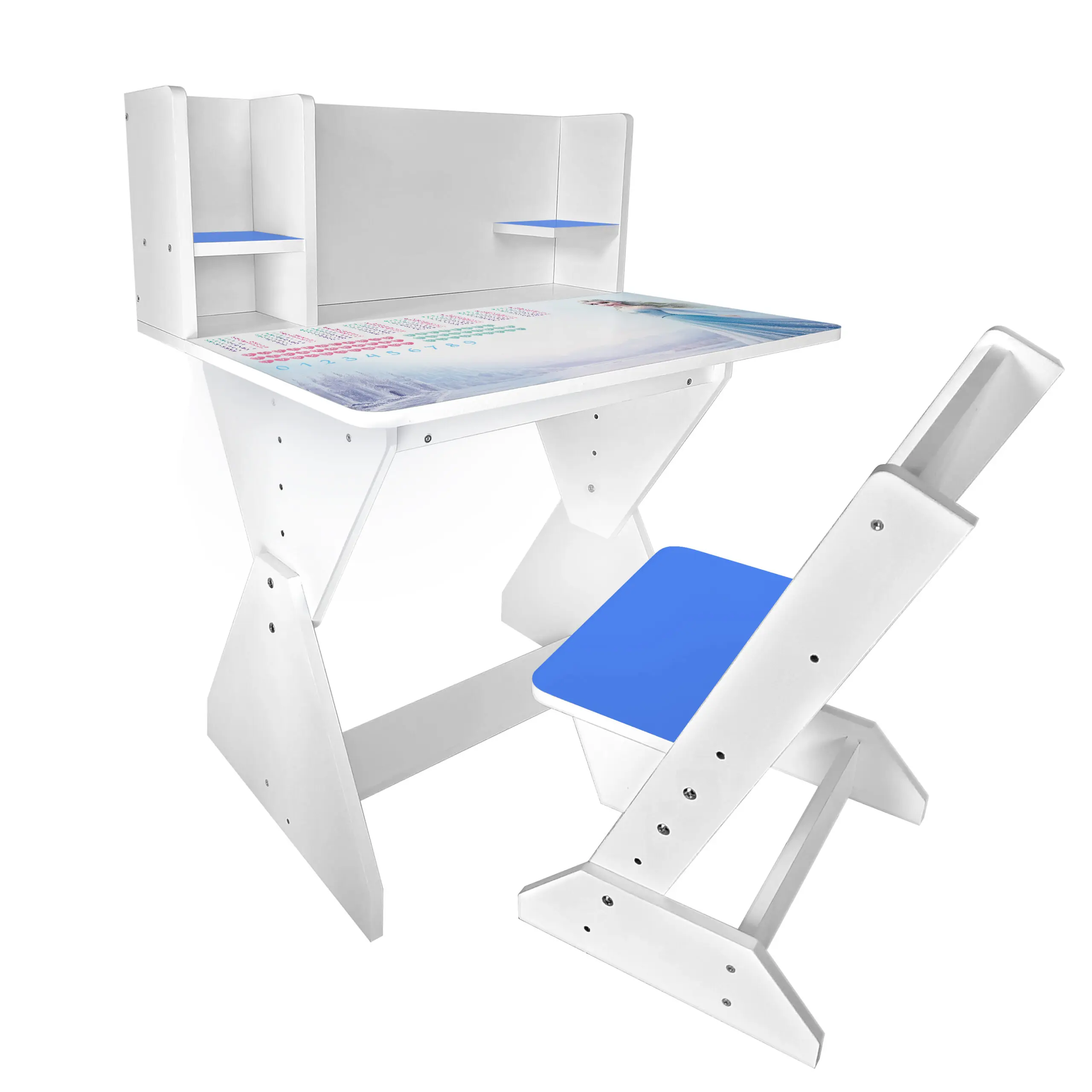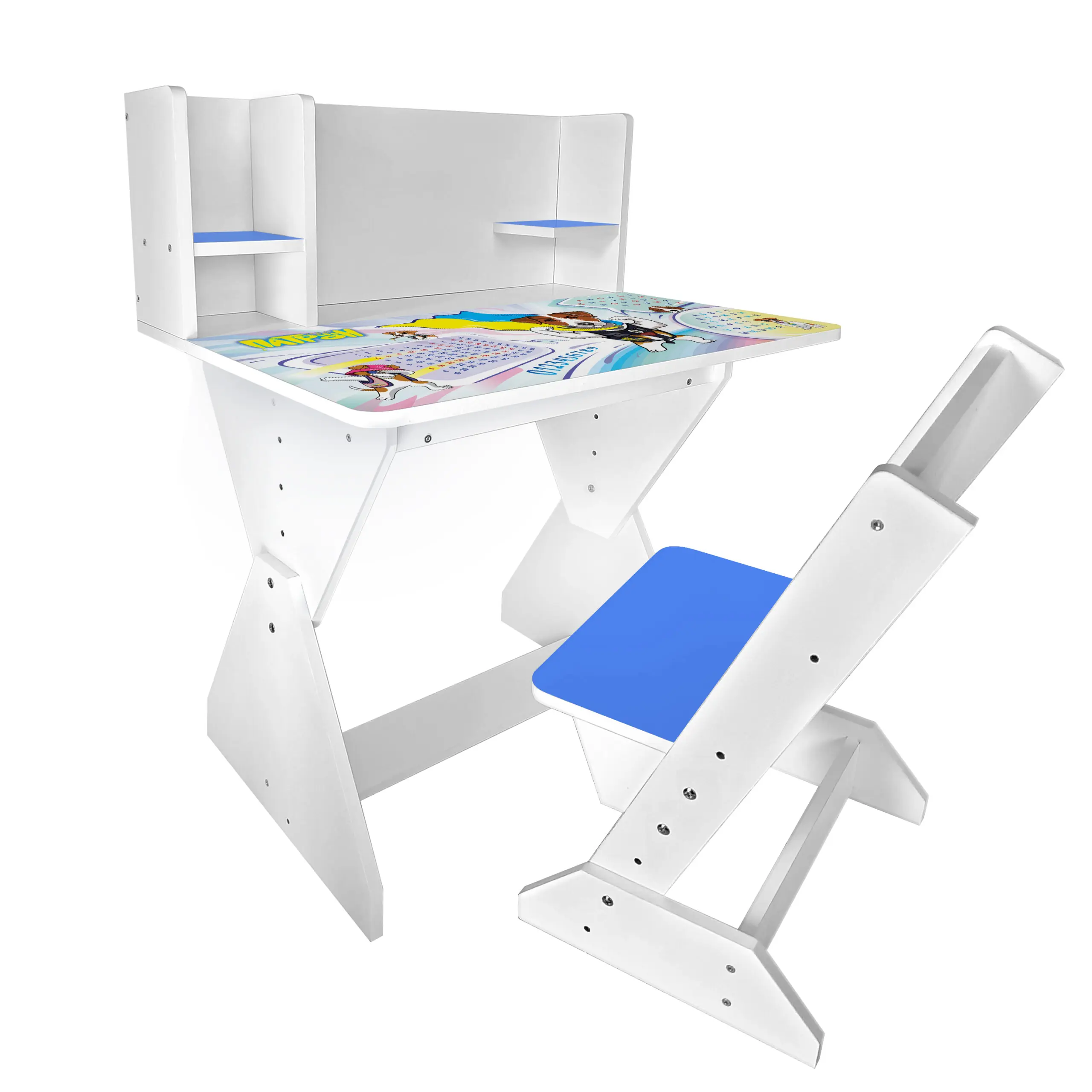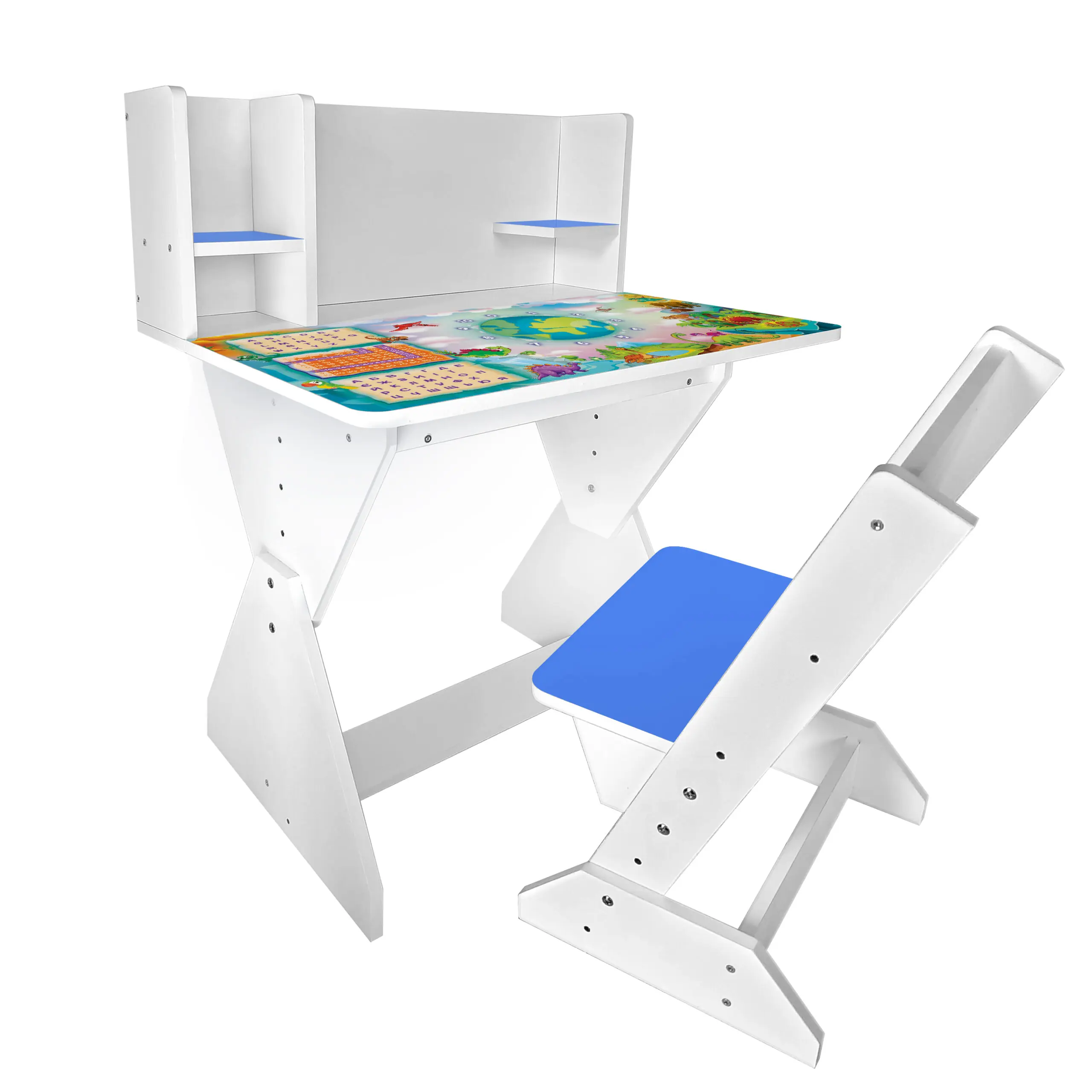 Колір: біло-синій (стільчик має синю спинку і сідушку, та перегородки на парті).