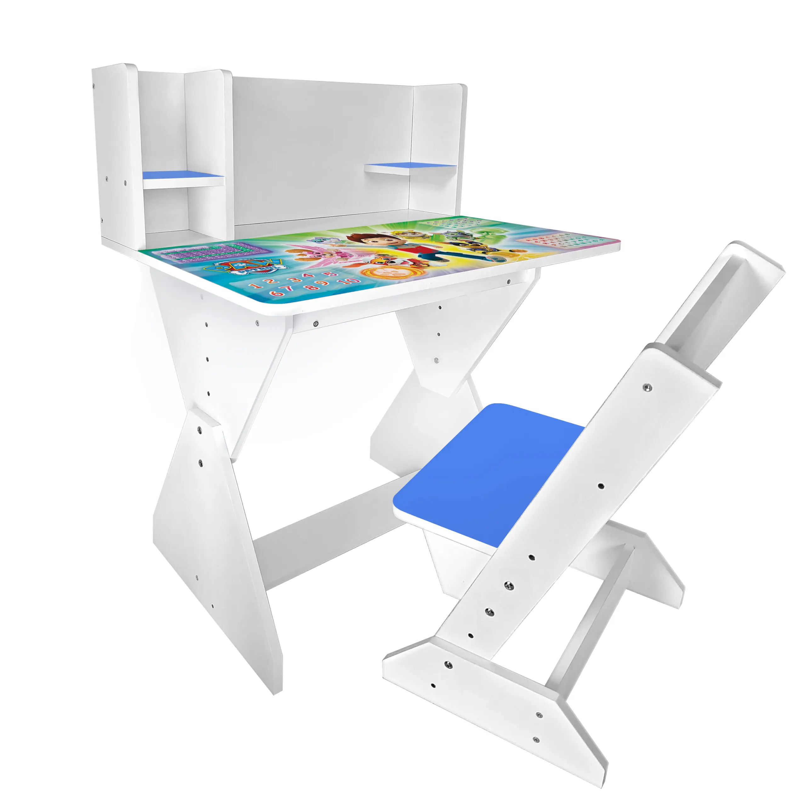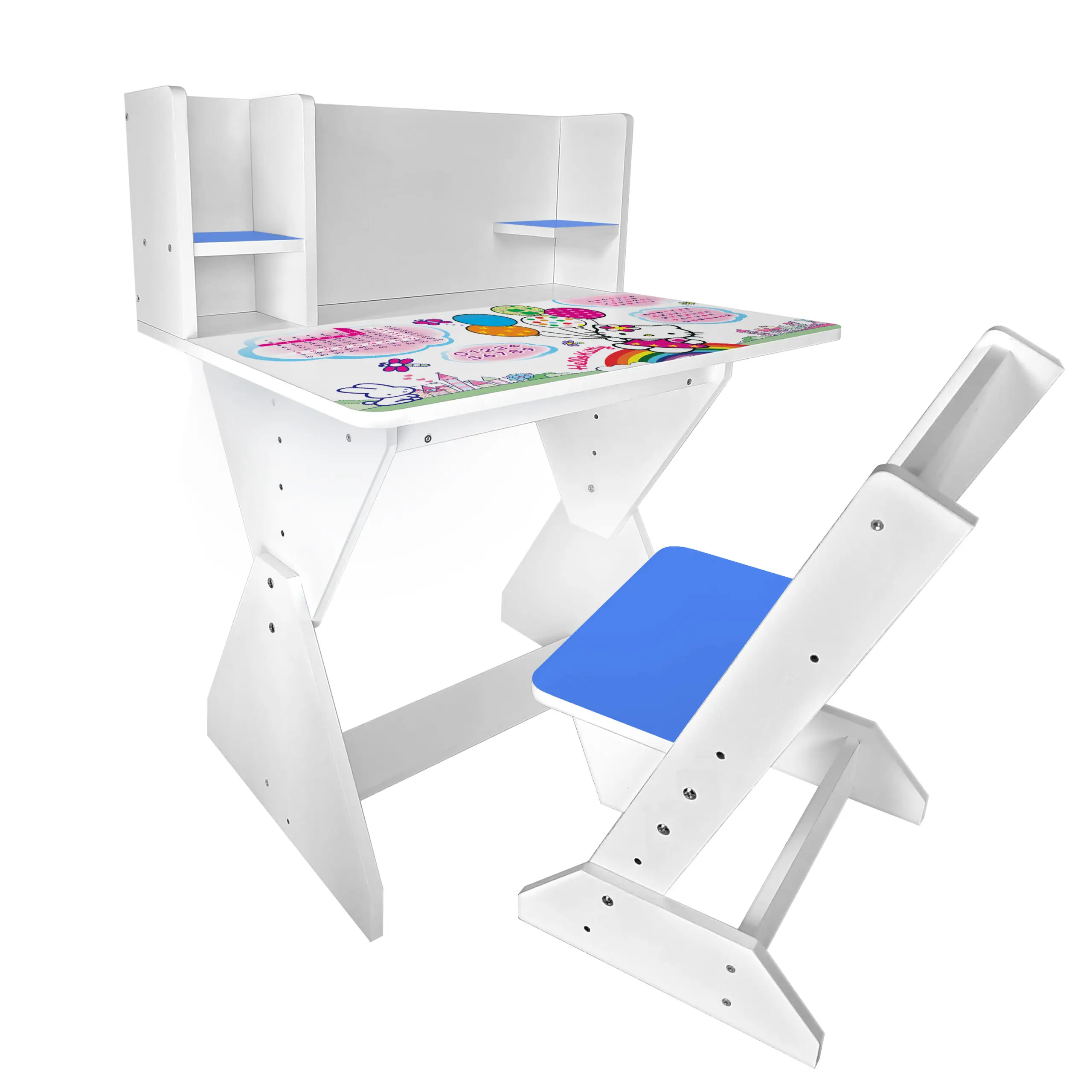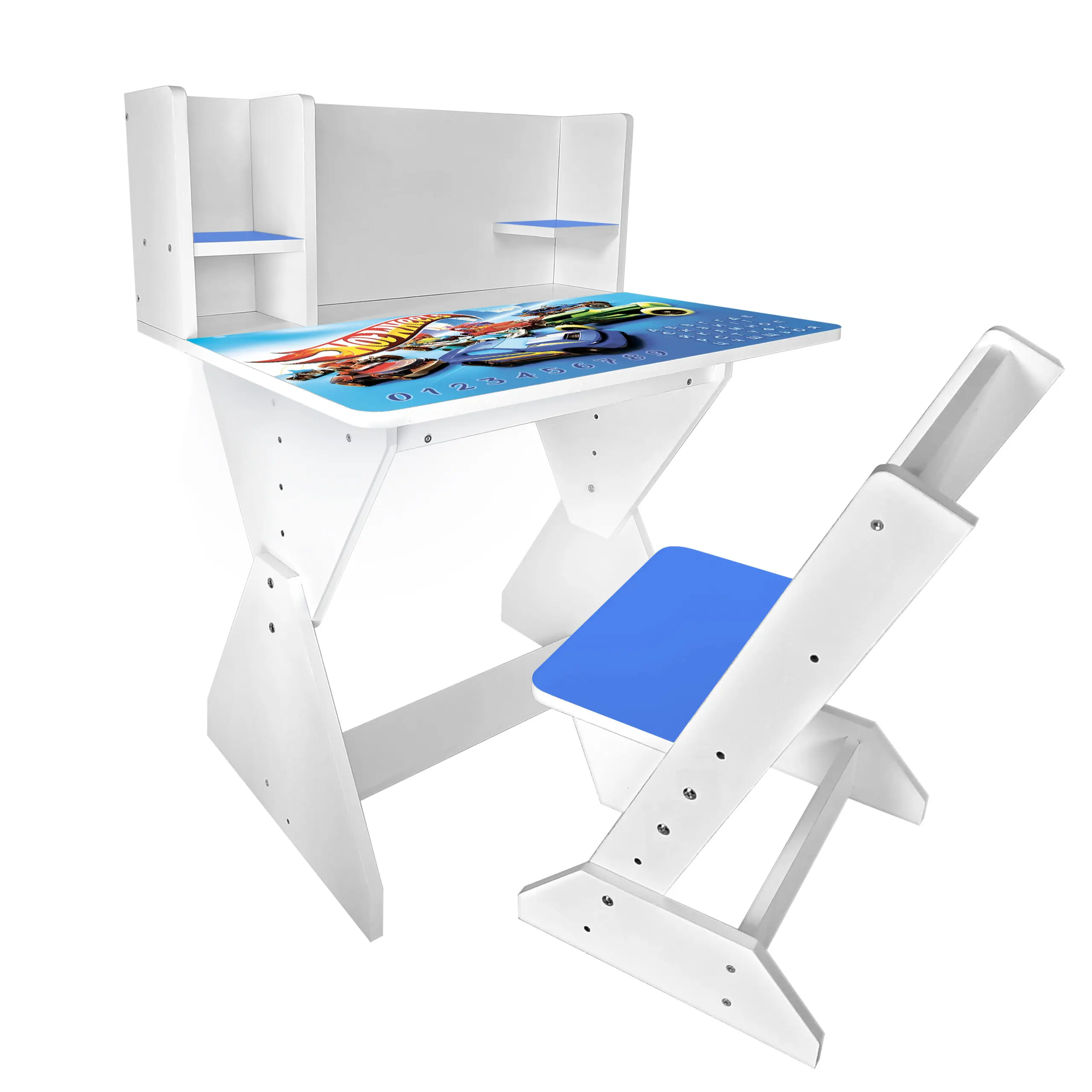 Колір: біло-синій (стільчик має синю спинку і сідушку, та перегородки на парті).