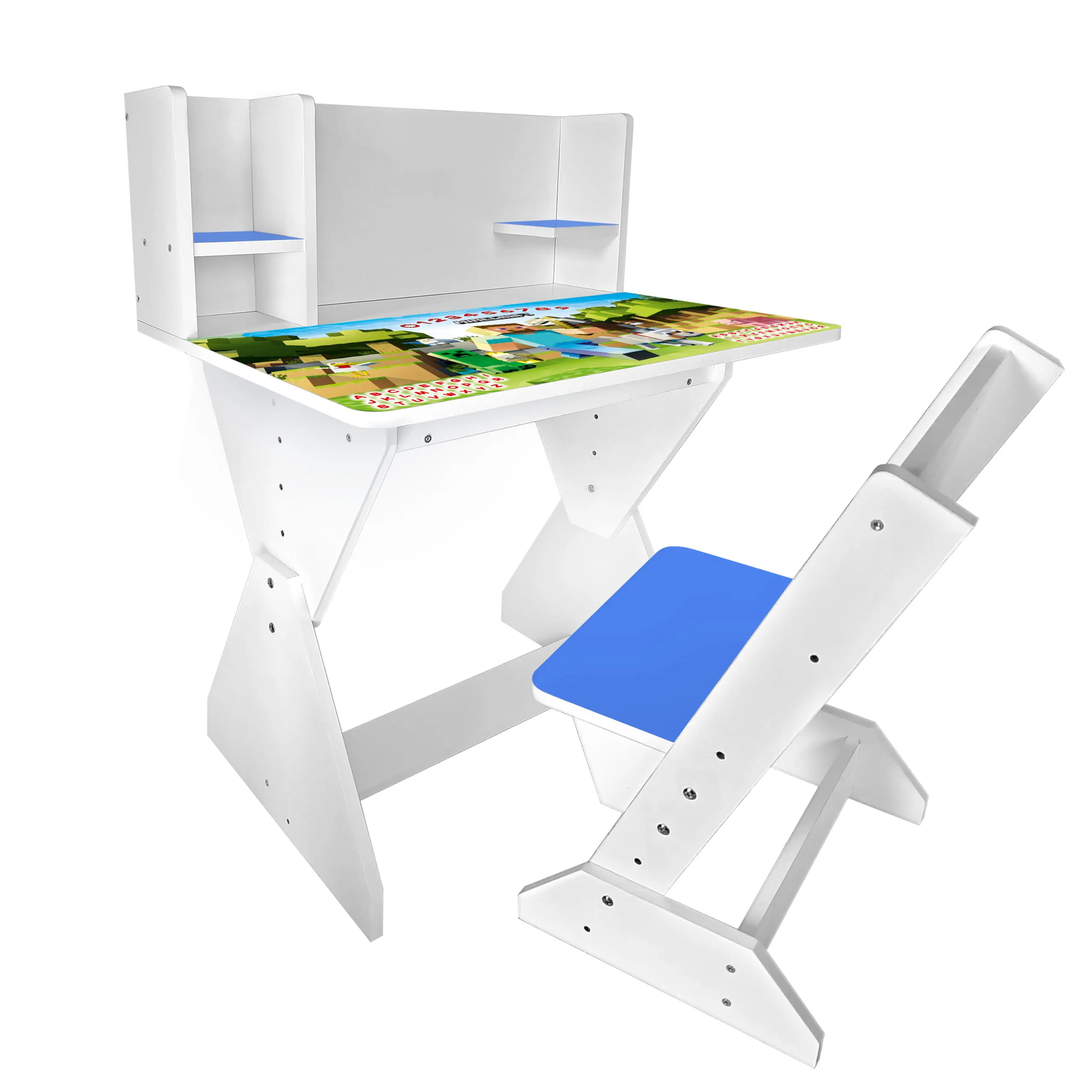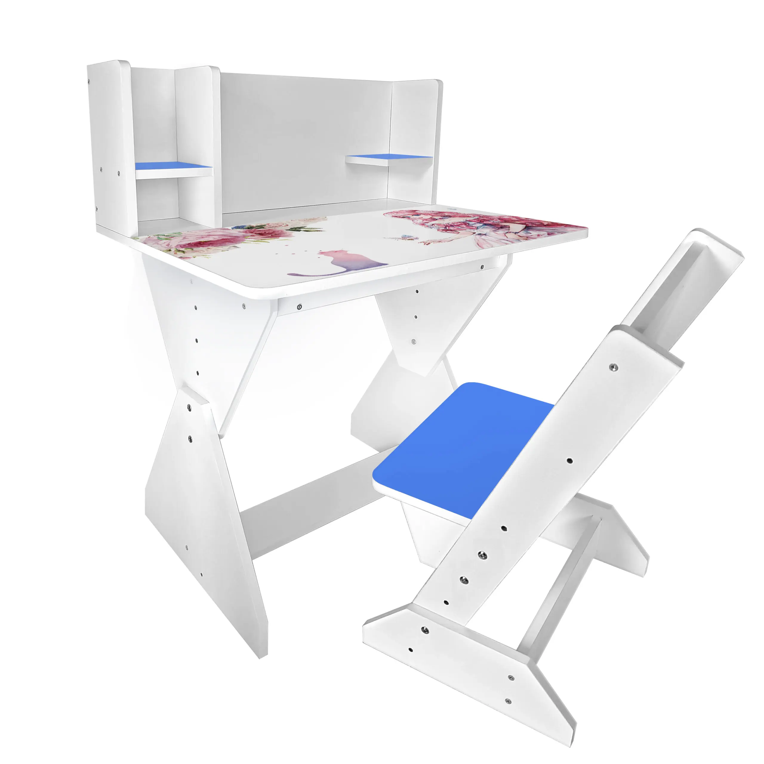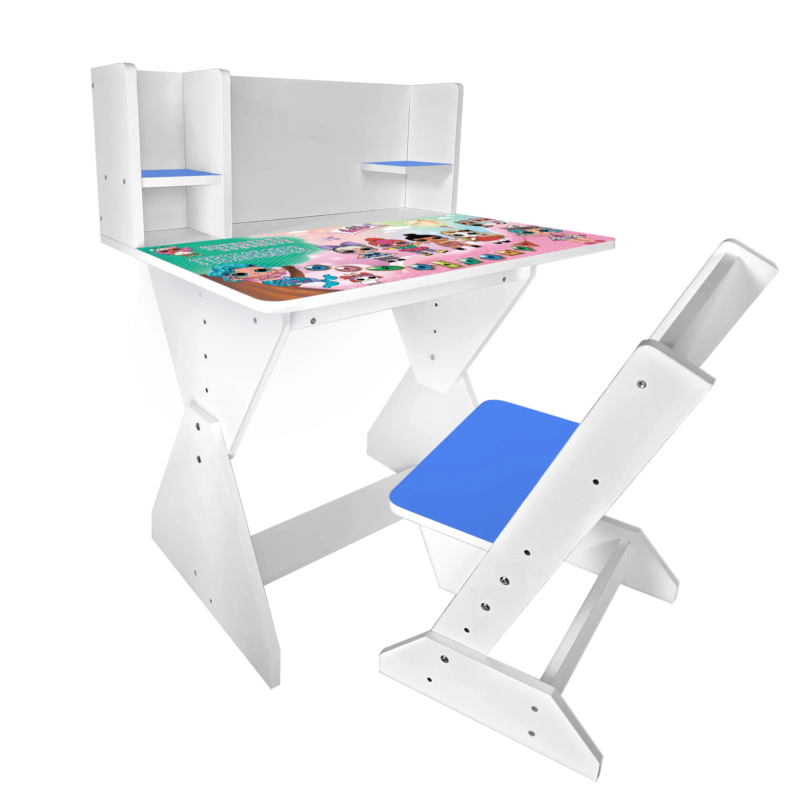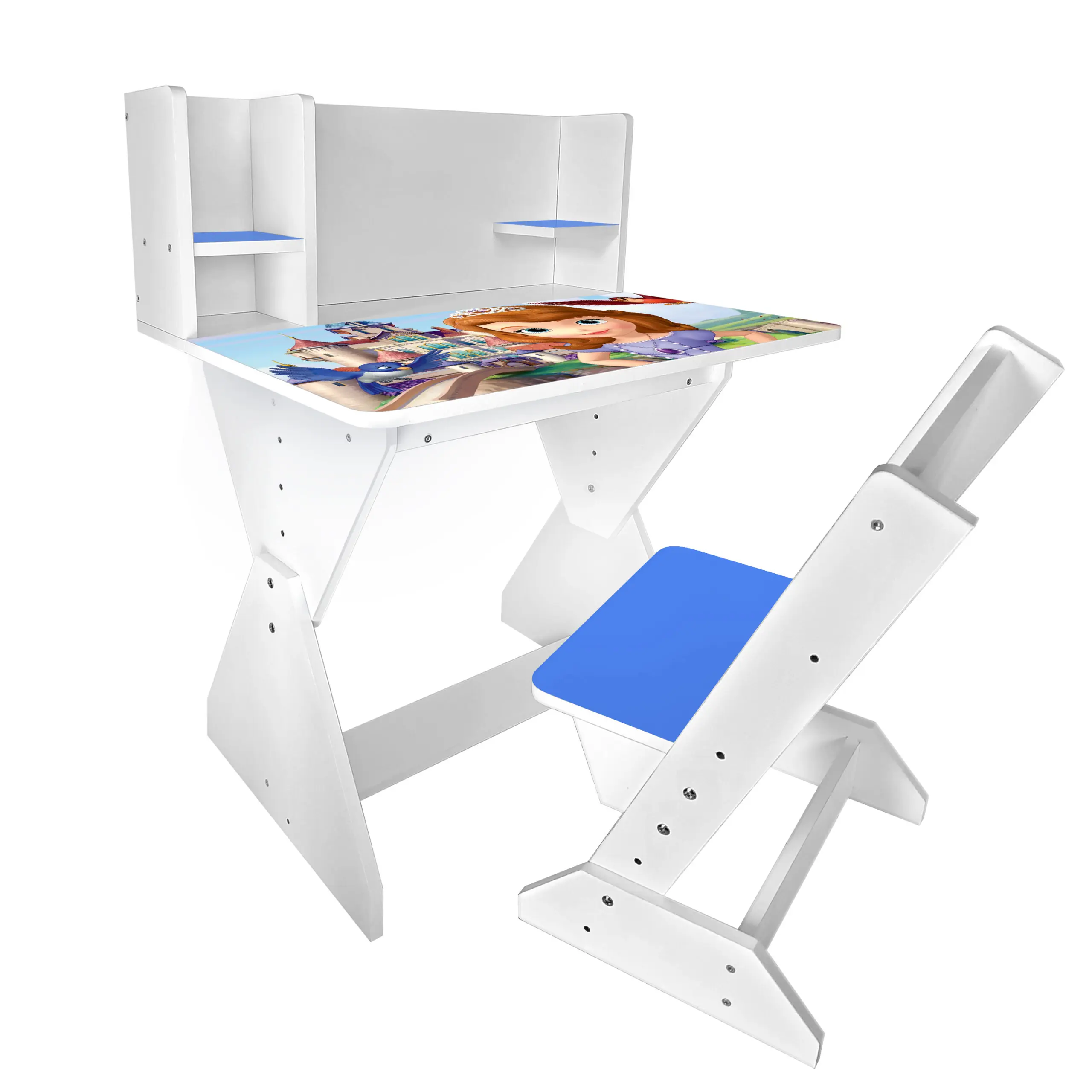 Колір: біло-синій (стільчик має синю спинку і сідушку, та перегородки на парті).