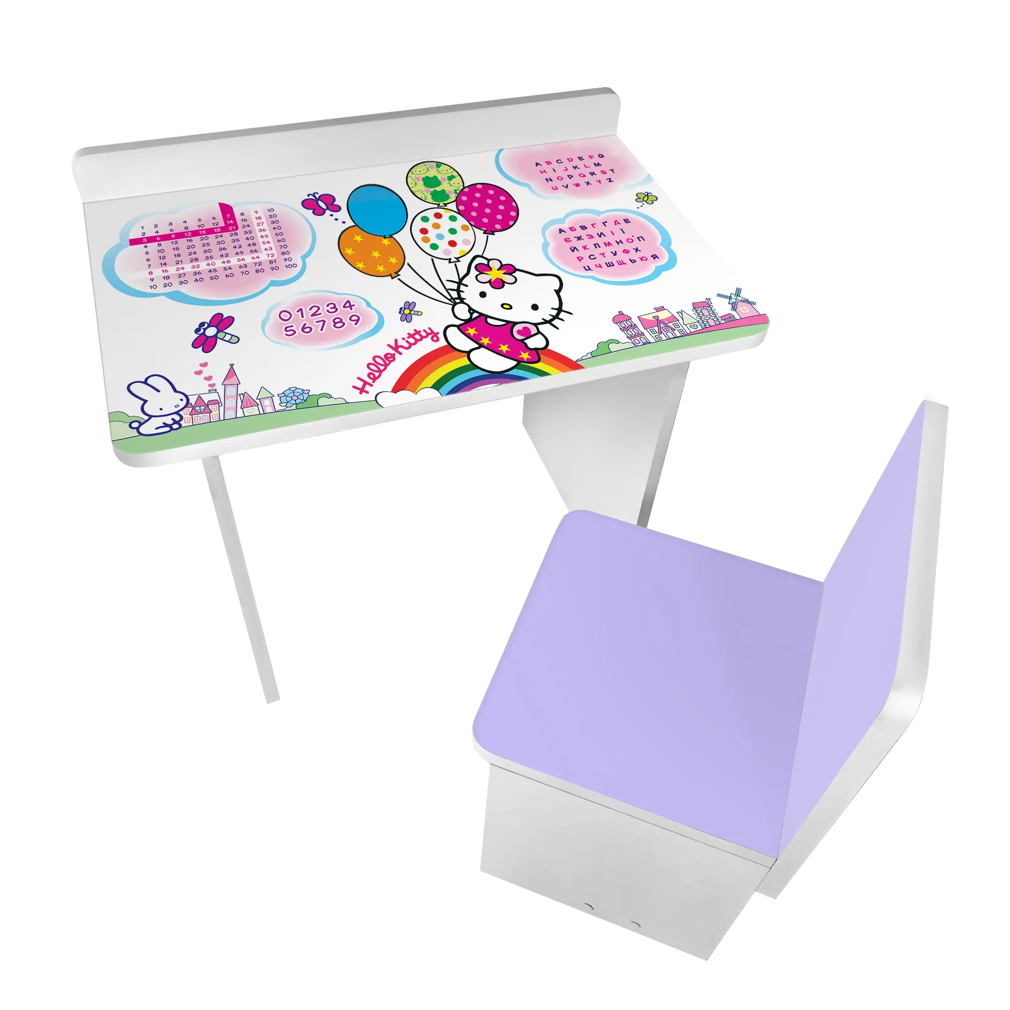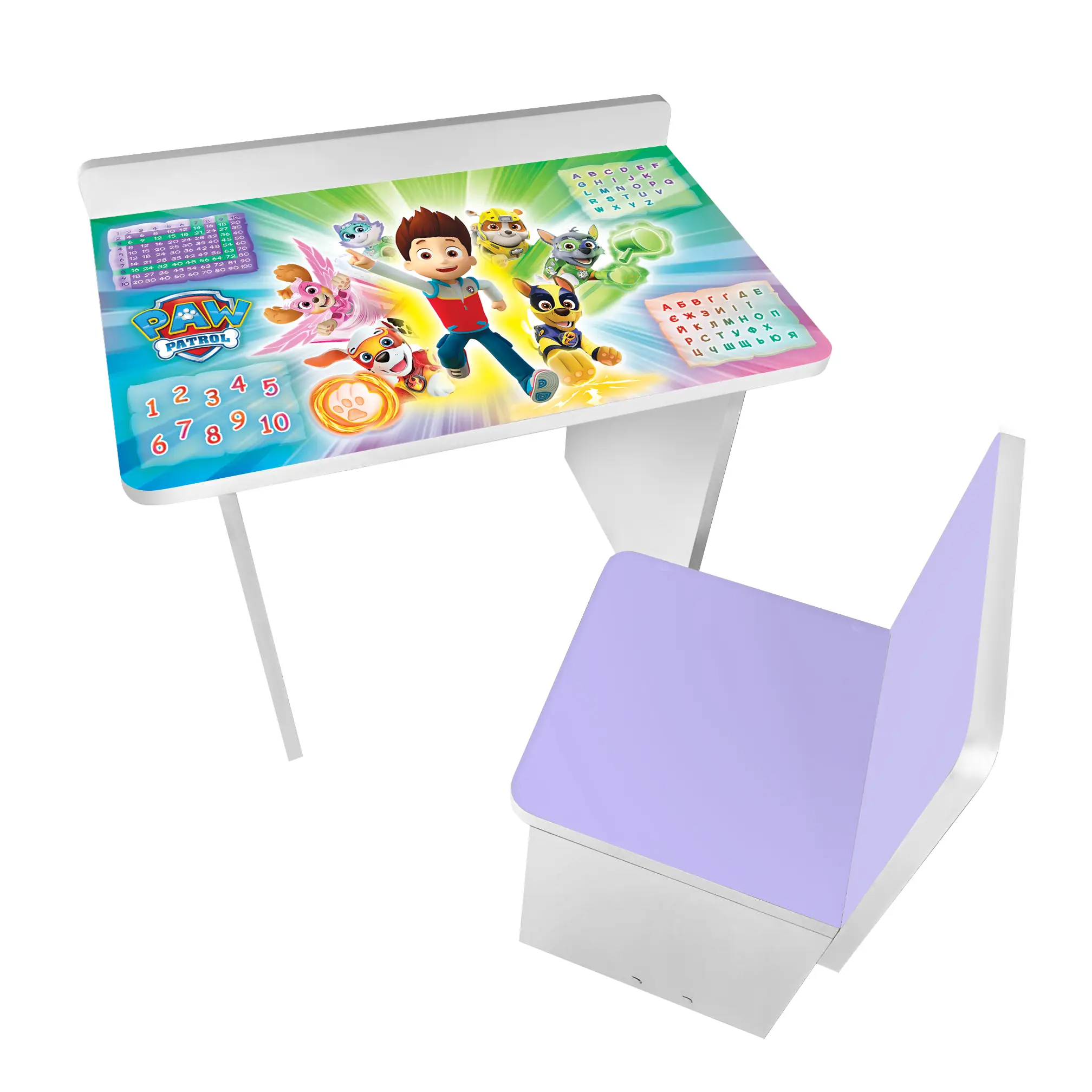Дитяча парта зі стільчиком, має збільшену стільницю для зручного навчання з ноутбуком.